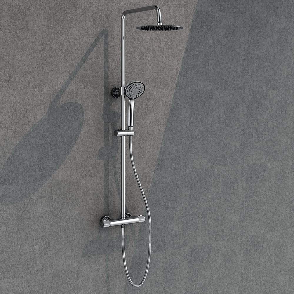 - Grifo termostático redondo con manetas de latón grafiladas, con selector de posición integrado en el grifo: ducha manual / duchón / stop.