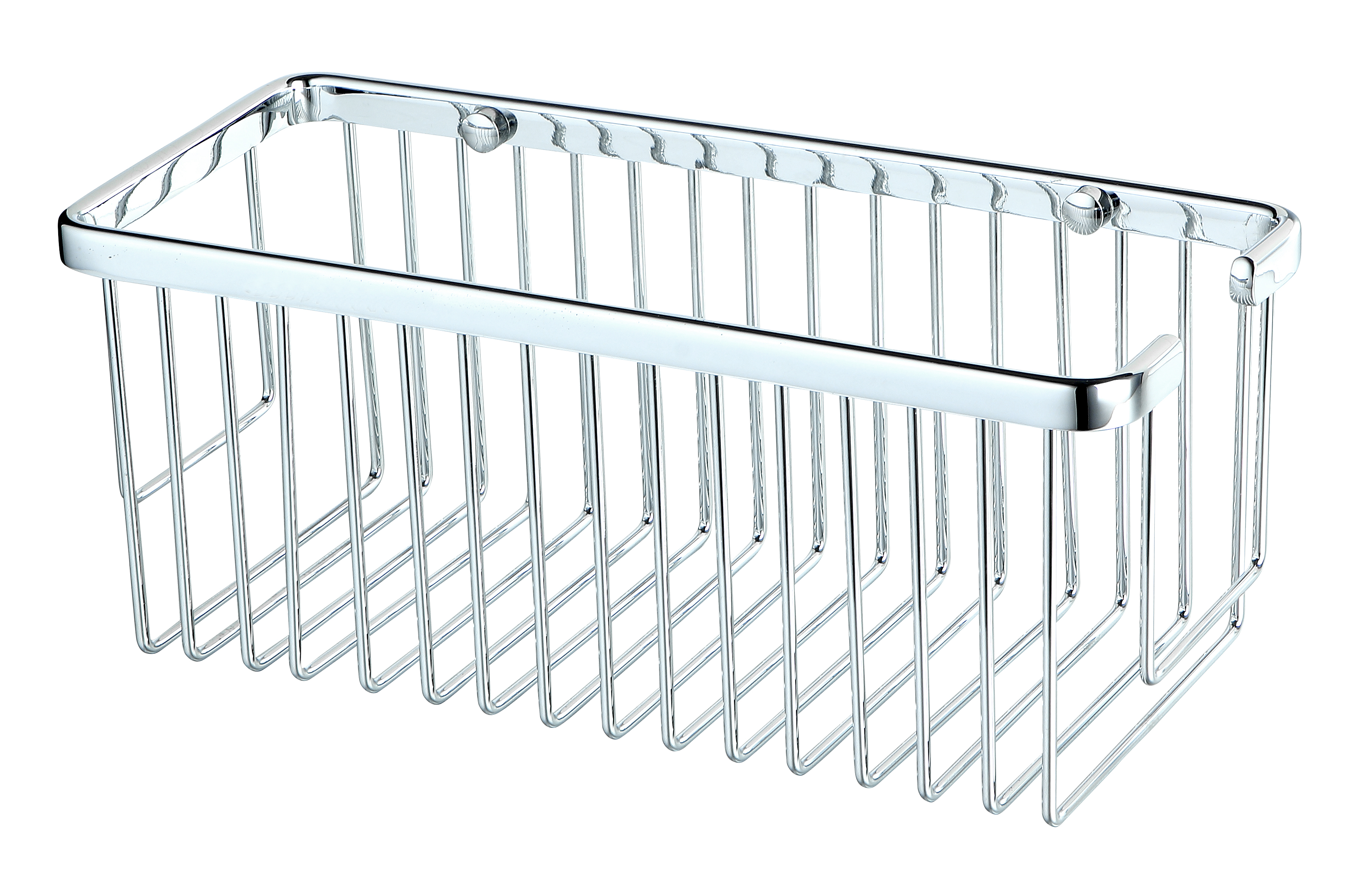 Cesto rectangular para la ducha de latón + acero inoxidable en brillo.