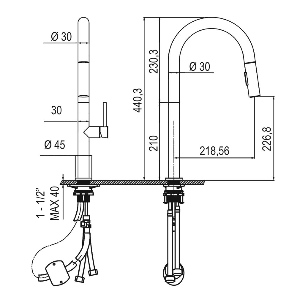 - Caño extraíble alto.