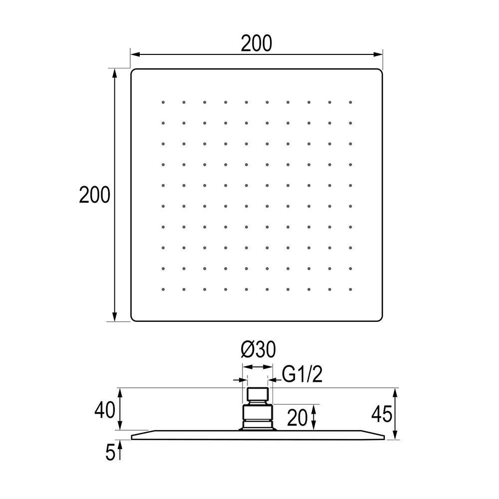 Duchón rociador NEGRO CUADRADO 22 x 22 cm - REF.: 111844 / 29'90 PVP