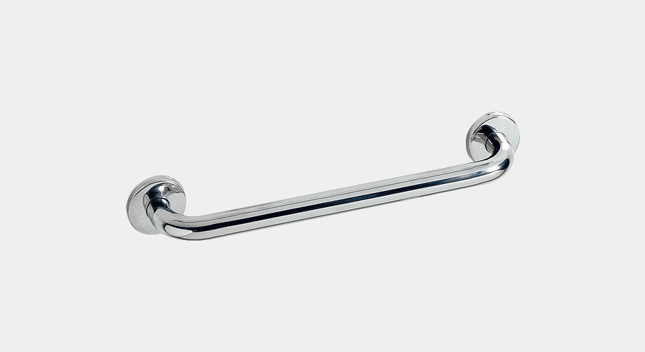 Esta asa de baño es un complemento de acero inoxidable en brillo.