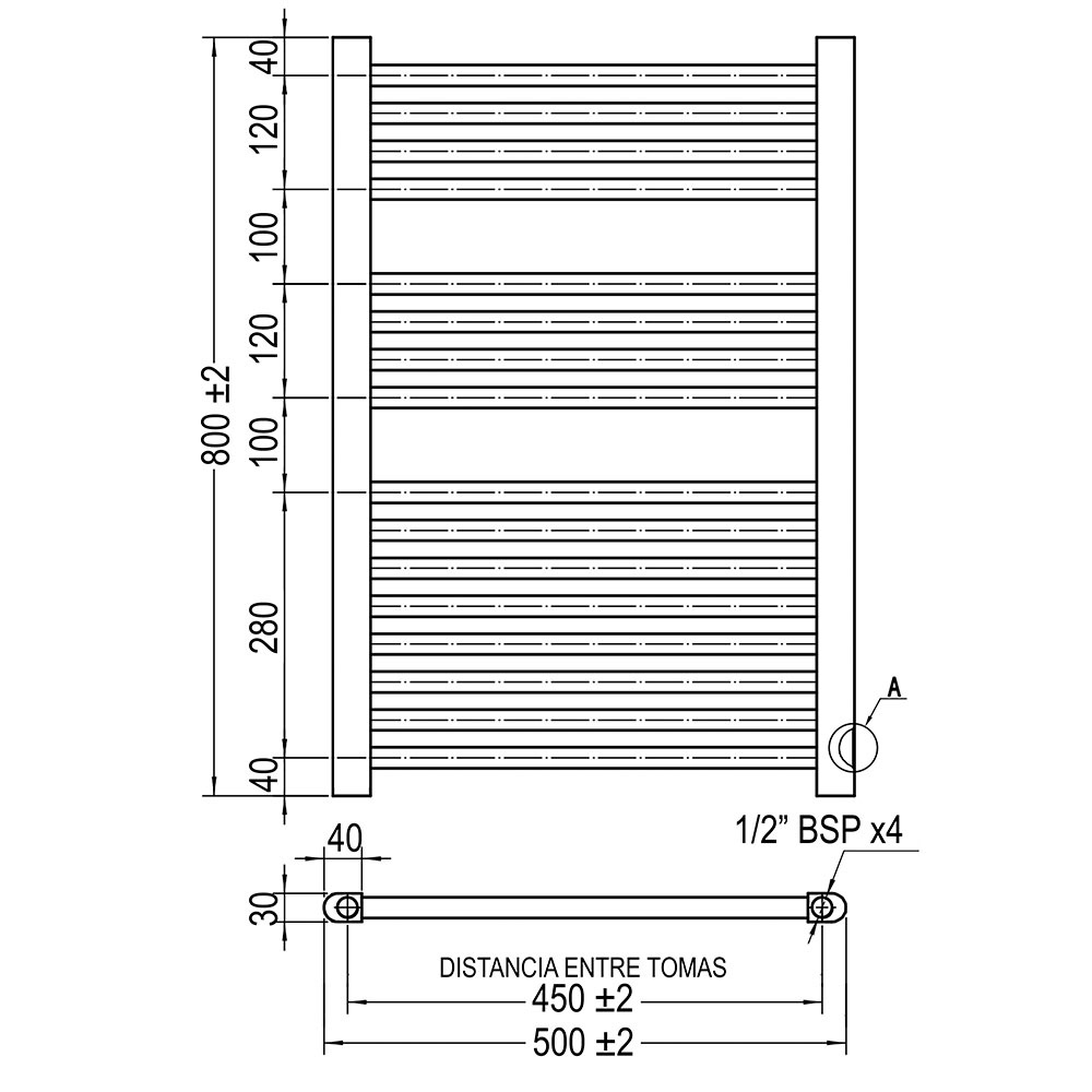 - Diámetro de los tubos de ø 22mm.